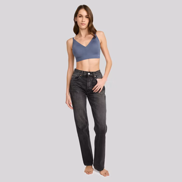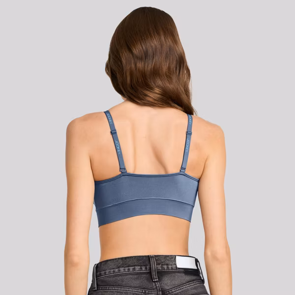 Light Lift Bralette – Dusk Blue S: Nylon Spandex Blend, Seamless, Adjustable Convertible Straps, V Neck