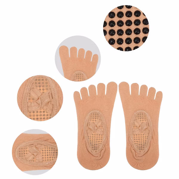Non-Slip Yoga Socks Five Toe Socks Pilates Barre for Women with Grips Beige 2 Pair