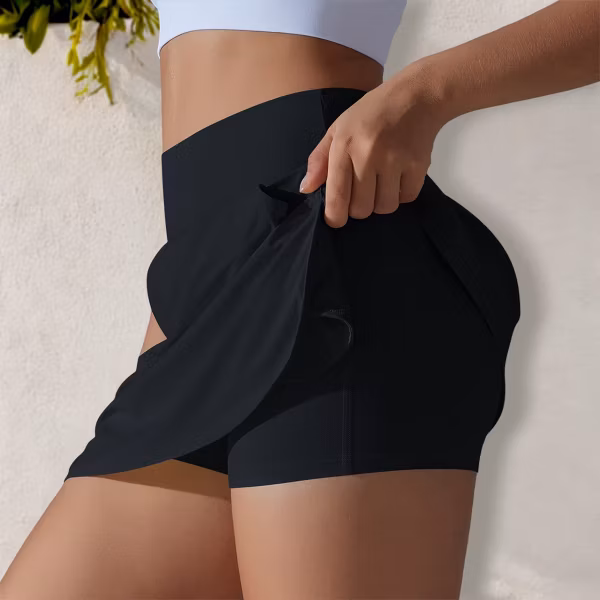 Women’s High Waist Athletic Skort with Built-In Shorts and Side Pockets- Large, Black