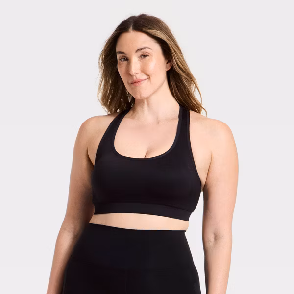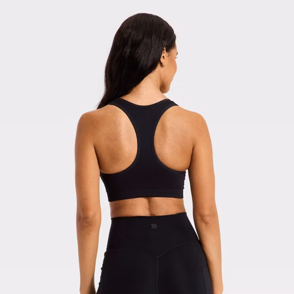Women’s Seamless Medium Support Racerback Sports Bra Jet Black L